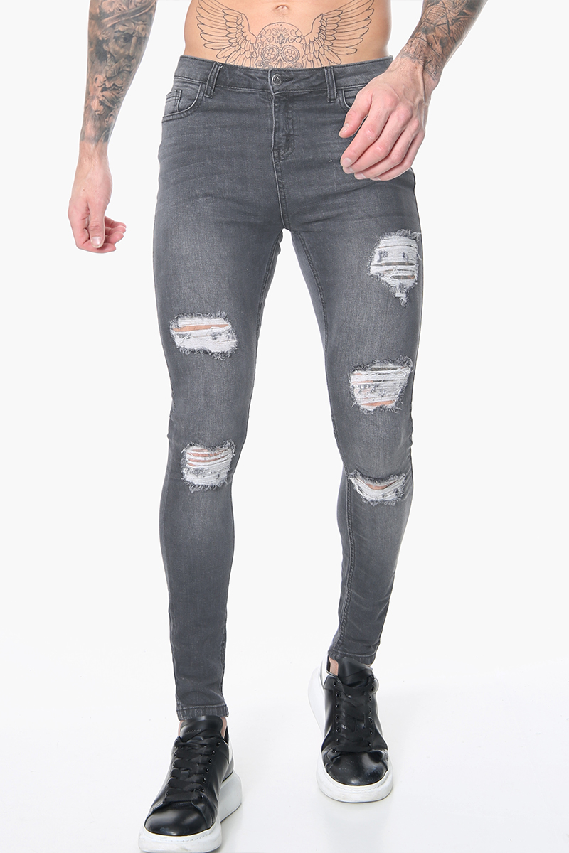 Distressed steel-grey super-skinny jeans with stretch for a sharp, lived-in look.